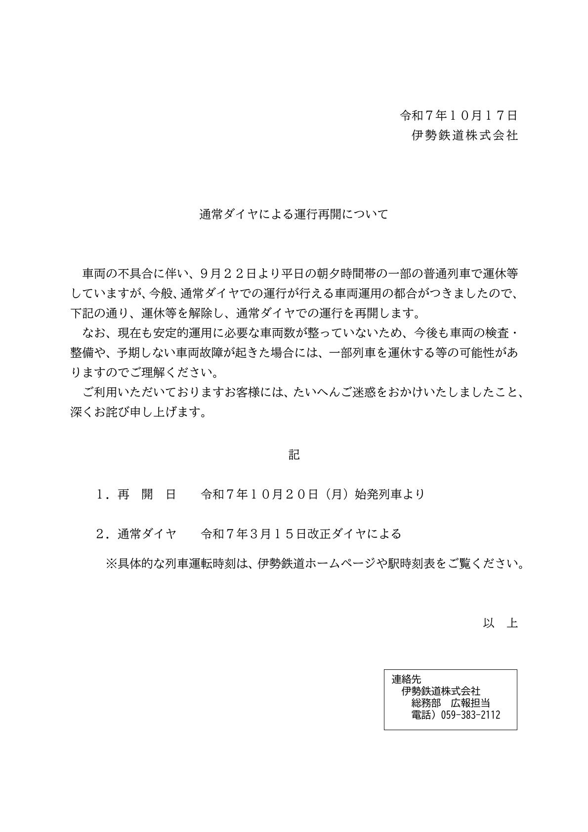 令和7年10月20日(月)から通常ダイヤで運行を再開します。