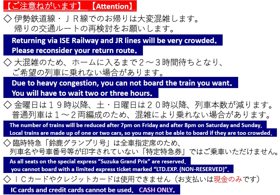 鈴鹿サーキット稲生駅金曜日~日曜日